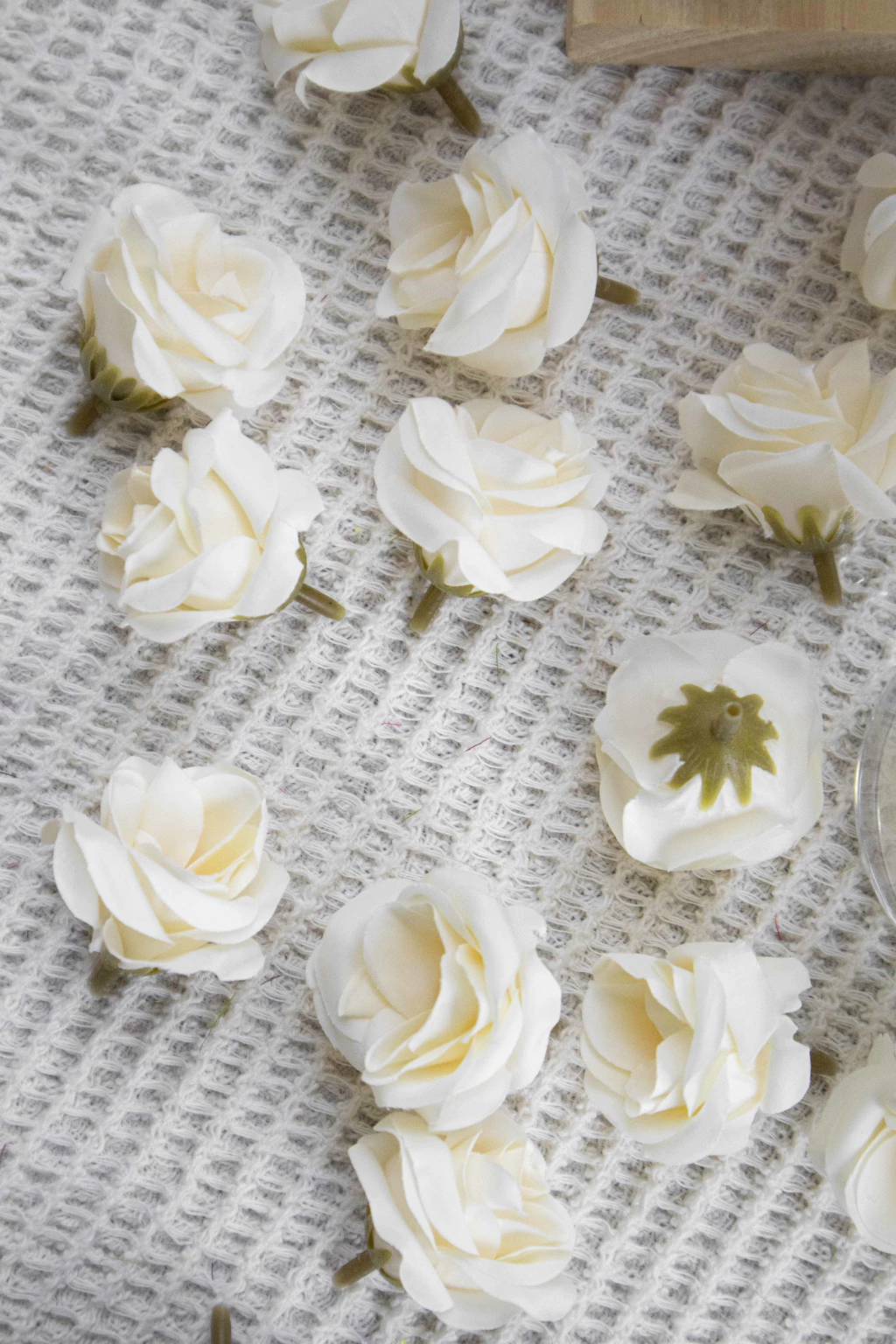 Decora tus souvenirs, ramos y centros de mesa con nuestro pack de 48 rosas artificiales de 3 cm, perfectas para dar un toque delicado y realista a cualquier proyecto. Cada flor incluye pico para encastrar, facilitando su uso en manualidades y arreglos sin mantenimiento.