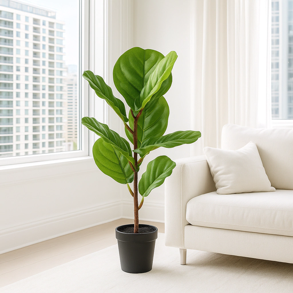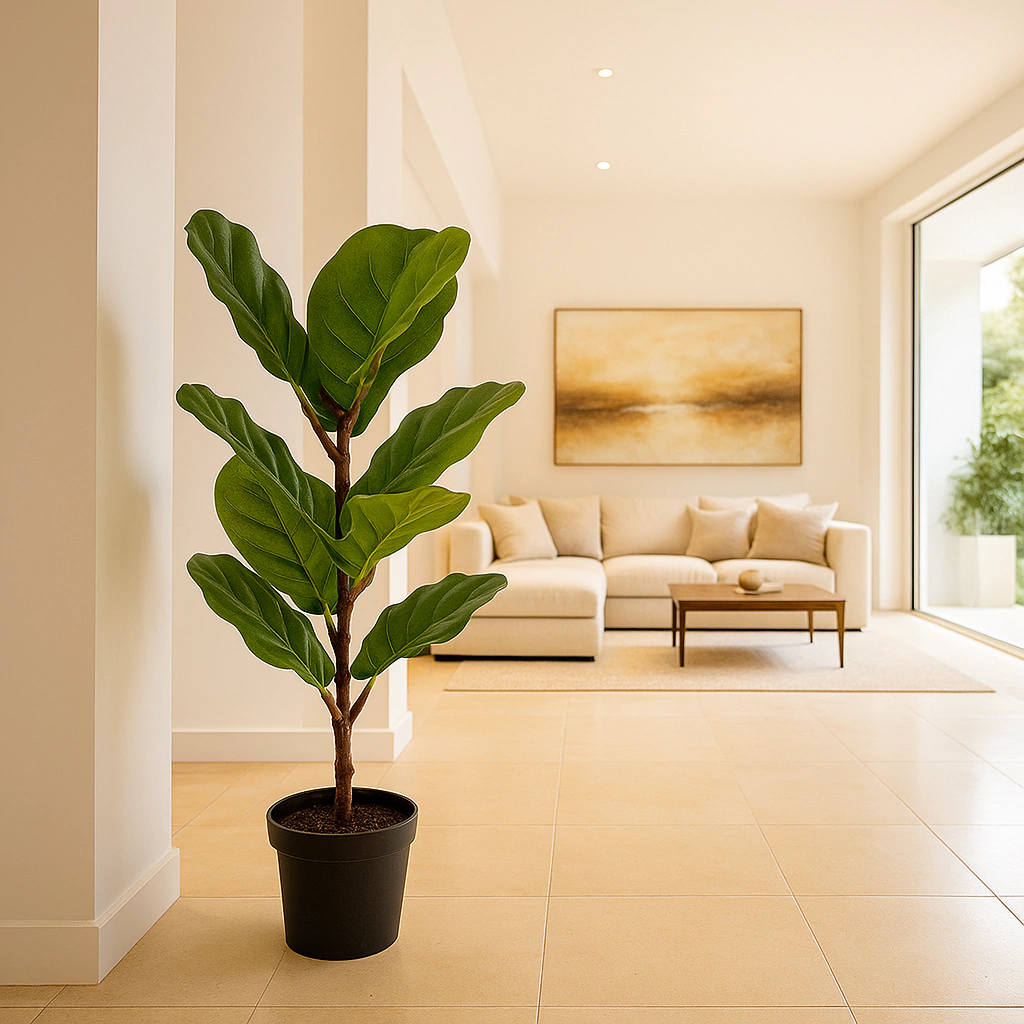 Dale un toque natural y elegante a tus espacios con nuestra Ficus Pandurata Premium, una planta artificial de diseño ultra realista ideal para decorar interiores o exteriores gracias a su protección UV.