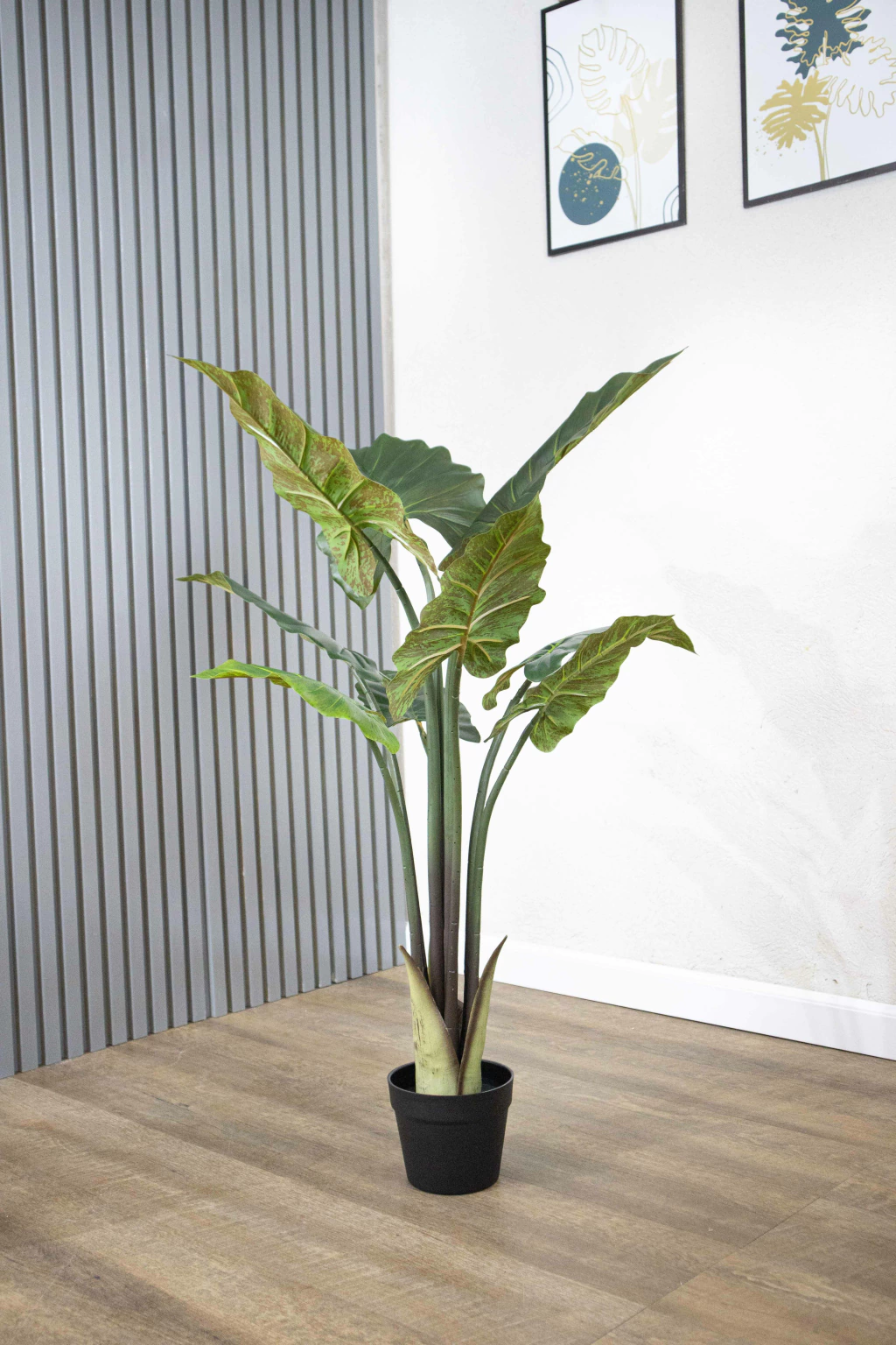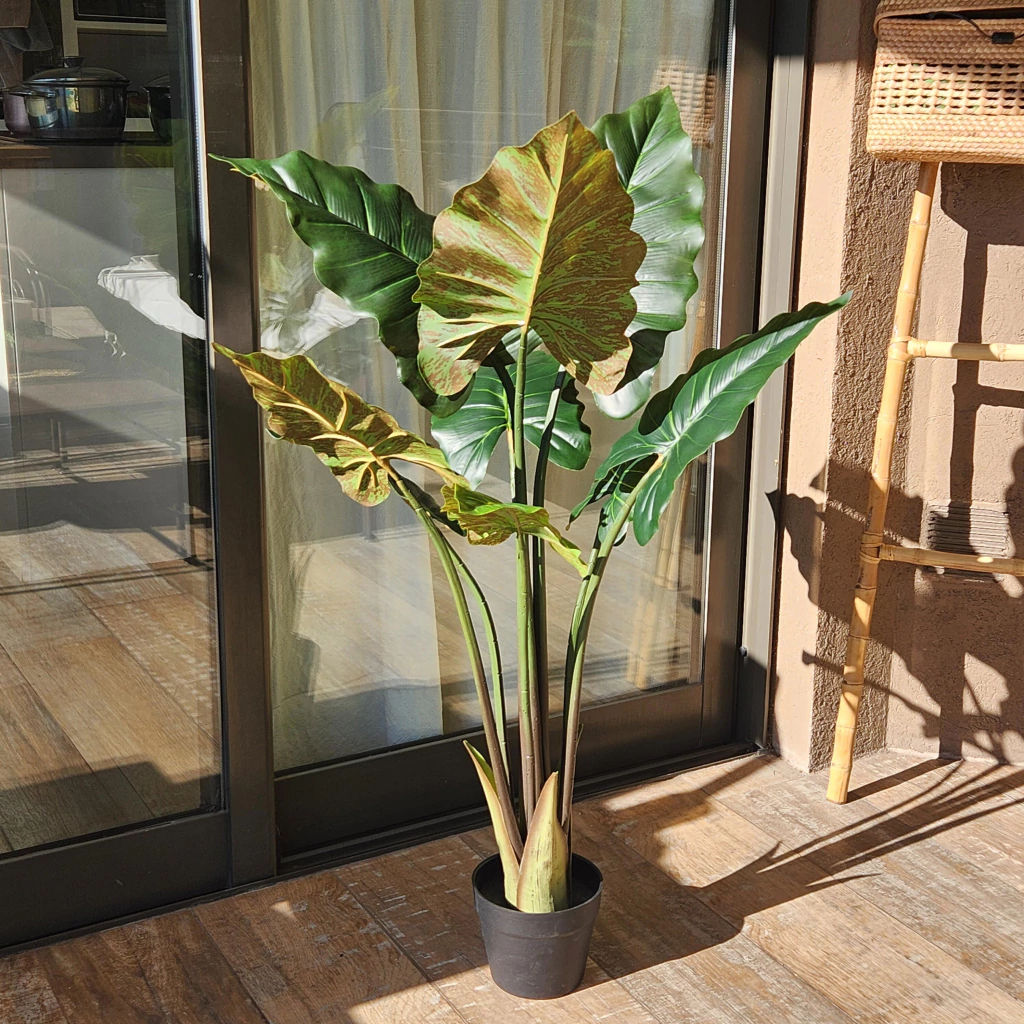 Sus hojas grandes y flexibles de alta calidad son ideales para interiores y exteriores, resistentes al sol gracias a su protección UV.