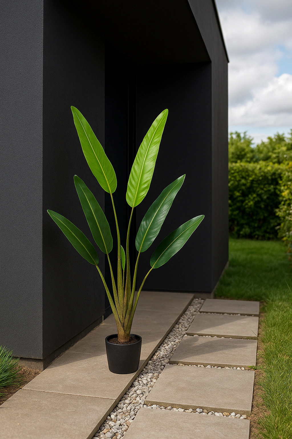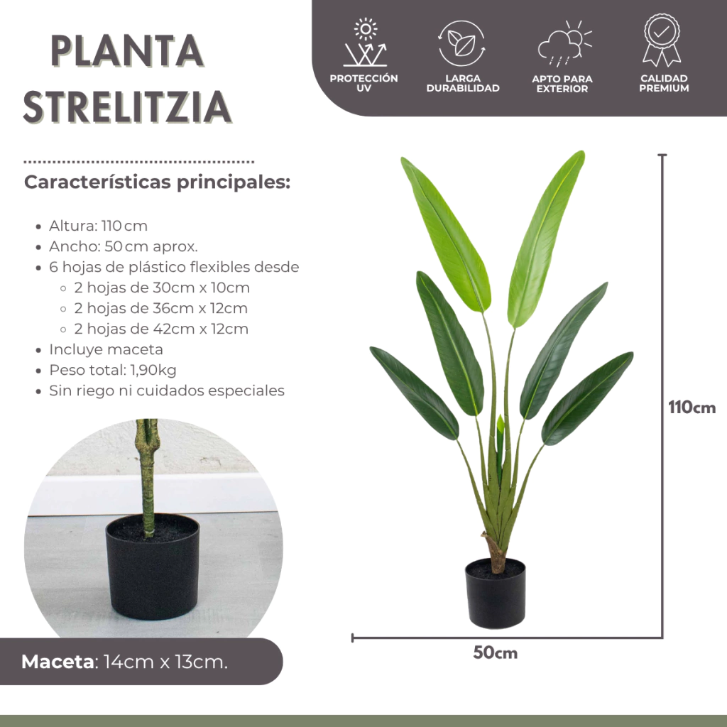 Sus hojas grandes y flexibles de alta calidad son perfectas para interiores y exteriores, resistentes al sol gracias a su protección UV.