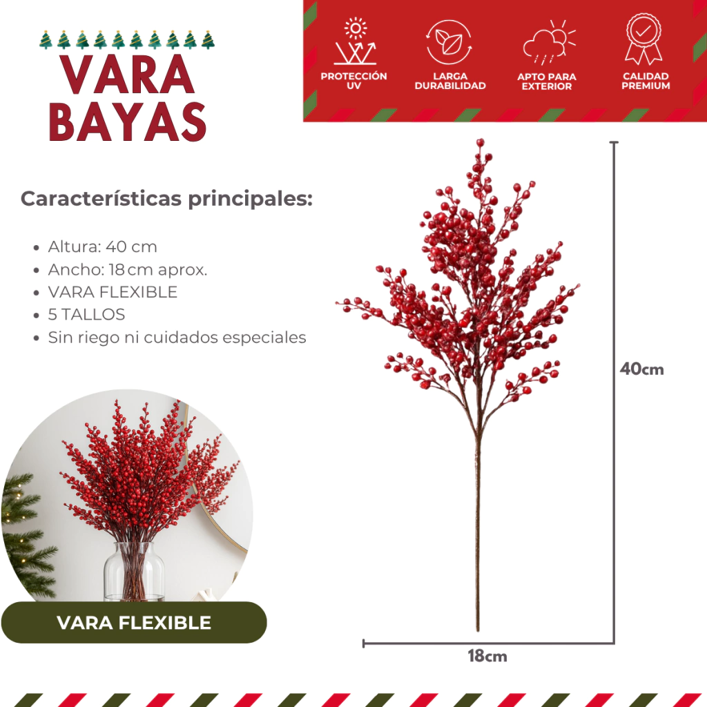 Incluye 5 tallos con bayas decorativas